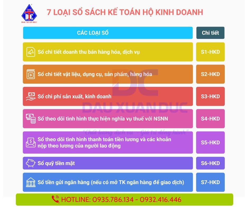 – Chủ HKD hỏi DC: Em có nghe là HKD kê khai cần phải thực hiện ghi 7 loại sổ sách kế toán, mà em không biết là 7 loại nào?