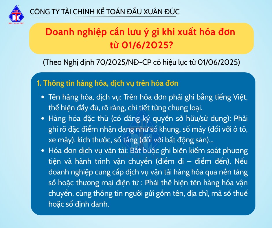 DOANH NGHIỆP CẦN LƯU Ý GÌ KHI XUẤT HÓA ĐƠN TỪ 01/6/2025? admin 6 tháng trước DOANH NGHIỆP CẦN LƯU Ý GÌ KHI XUẤT HÓA ĐƠN TỪ 01/6/2025?