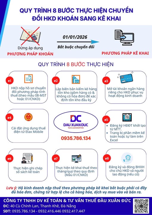 Quy trình thực hiện chuyển đổi Hộ kinh doanh khoán sang kê khai admin 2 tháng trước Quy trình thực hiện chuyển đổi Hộ kinh doanh khoán sang kê khai —————————————- CÔNG TY TNHH DỊCH VỤ KẾ TOÁN & TƯ VẤN THUẾ ĐẦU XUÂN ĐỨC 0935.786.134 – 0932.416.446 … Xem thêm #HKD #donghanhcungHKD #ketoandanang #dichvuketoan #KetoanDauXuanDuc