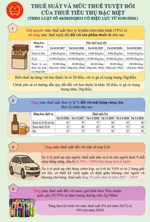 Thuế suất và mức thuế tuyệt đối của Thuế Tiêu thụ đặc biệt (Theo luật số 66/2025/QH15 có hiệu lực 01/01/2026)